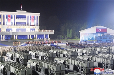 这张朝中社提供的照片显示的是在平壤举行的新型战术弹道导弹武器系统交接仪式现场。据朝中社5日报道,朝鲜4日在平壤举行新型战术弹道导弹武器系统交接仪式,共有250辆新型战术弹道导弹发射架车移交给边境一线部队。