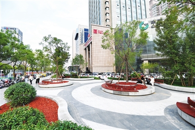 8月6日,刚建成的新建路迎泽大街口小游园环境优美,成为市民休憩歇脚的好去处。牛利敏 摄