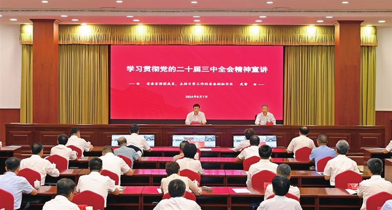 报告会上,武晋从深刻认识全会的重大意义、深入学习领会习近平总书记重要讲话精神、全面准确理解《决定》提出的进一步全面深化改革重大举措、全力以赴抓好全会精神贯彻落实等方面,作了系统宣讲。他表示,学习好、宣传好、贯彻好党的二十届三中全会精神,是当前和今后一个时期的一项重大政治任务,要把学习宣传贯彻全会精神同学习领会习近平总书记关于全面深化改革的一系列新思想、新观点、新论断结合贯通起来,加强组织领导、坚持整体推进,以钉钉子精神抓好各项改革任务落实。