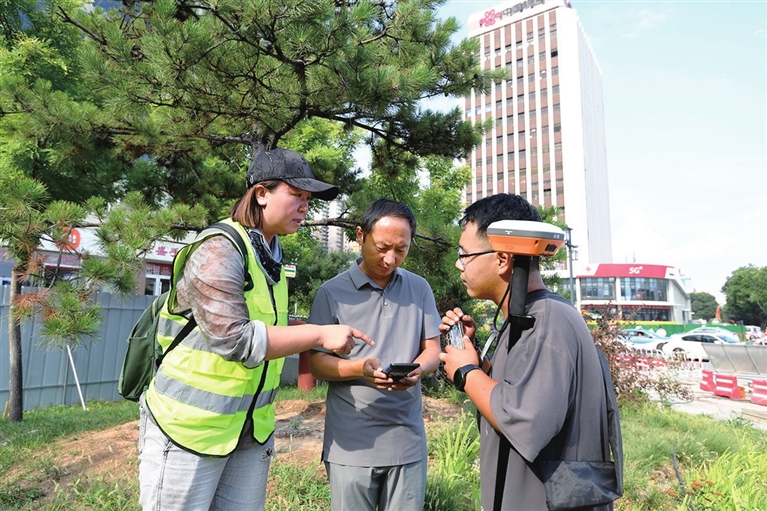 一身长袖长裤,一顶遮阳帽,再套一件工程背心,这就是胡海丽全部的“劳动保护”了。“此次迎泽大街维修改造,新增了新建路南北游园,是配套绿化的一个重点项目。”胡海丽拿着手机,翻看着图纸,和几位工人师傅一起现场走位,左右比划,“这儿是花坛花境,这儿是便民座椅,这儿是景观松,这是高秆海棠……咱们可一定严格按图纸施工,按要求施工,按进度施工。”虽只有几百平方米,可几圈走下来,也是汗流浃背。