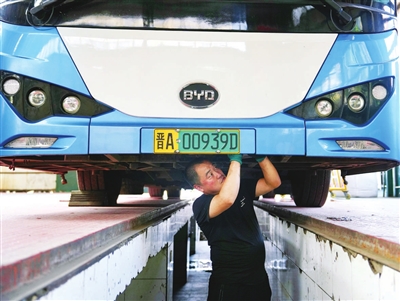 8月4日,位于长风东街的太原公交二公司修保车间内热浪滚滚,地沟里、车顶上、车厢内……维修工人们正在辛勤工作,他们被称为“公交医生”。