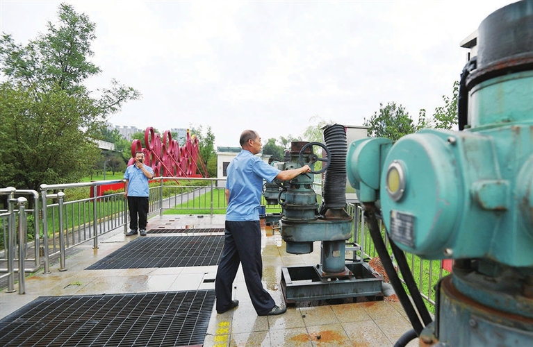 8月9日,市排管中心泵站运行所水西关泵站工作人员正在操作排水设备。面对防汛关键期,我市各雨水泵站积极做好日常维护保养,全力以赴确保城市安全度汛。李学军 宋卫东 摄影报道