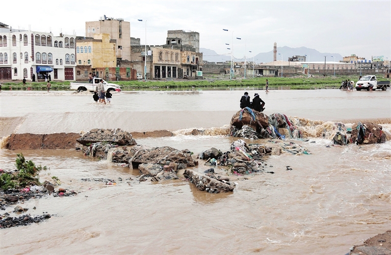 这是8月16日在也门首都萨那拍摄的受灾区域。 联合国机构8月15日发布报告说,8月初以来也门多地遭遇暴雨引发洪水,导致逾18万人受灾。新华社发