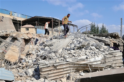 8月17日,在黎巴嫩奈拜提耶,人们查看在以色列空袭中被毁的建筑。据黎巴嫩国家通讯社报道,黎卫生部17日说,以色列当天凌晨空袭了黎南部奈拜提耶地区,造成至少9人死亡、5人受伤。新华社发