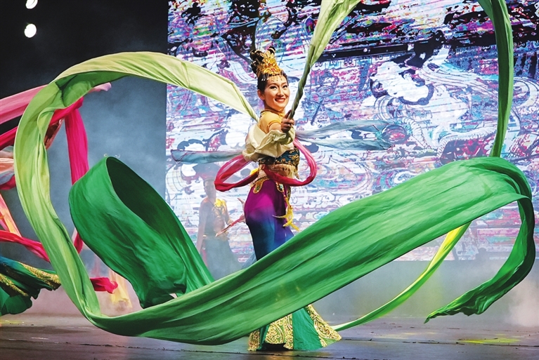8月18日,在巴西圣保罗,西北民族大学艺术团成员在“中国的色彩:民族万花筒”晚会上表演舞蹈。当晚,西北民族大学艺术团为巴西圣保罗民众献上精彩的文艺演出,庆祝中巴两国建交50周年。新华社发