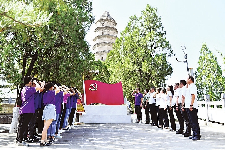 初秋时节,延安南泥湾天高云淡。党徽广场上,熟悉的《南泥湾》曲调悠扬。