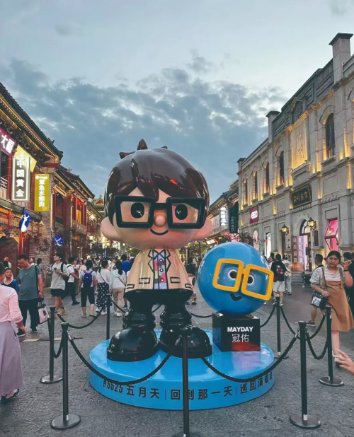 钟楼街也是五月天歌迷们的打卡地,五月天的五个公仔分布在不同位置。如果想集齐5张照片,就得把钟楼街逛个遍。公仔阿信后面是一家叫“晋礼”的文创店,这里人头攒动,好不热闹。这间文创店不仅位置好,更是把文创产品做出了太原特色,让大家忍不住想购买。
