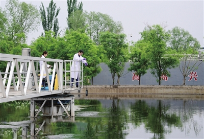 8月21日,太原市城市排水管理中心汾东污水处理厂内,工作人员正在提取水样并进行日常水质项目化学检验工作。近年来,太原污水处理标准不断提高,引进设备,增加处理工序,每日有80多万吨的达标尾水排入汾河,为改善汾河生态环境奠定基础,努力实现“一泓清水入黄河”。米国伟 耿婧媛 摄影报道
