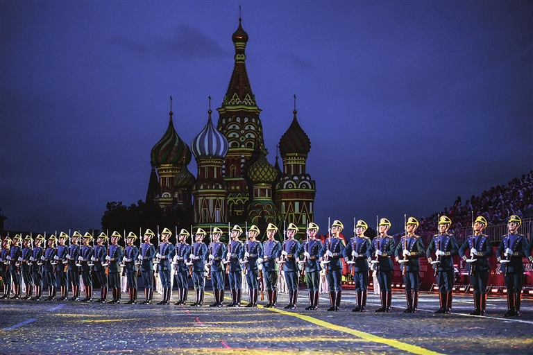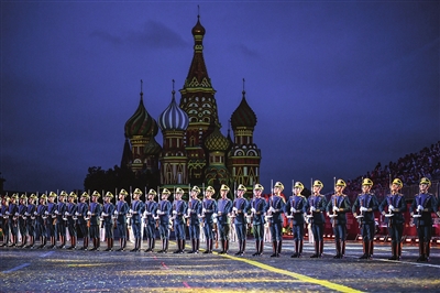 图③:8月23日,在俄罗斯首都莫斯科,俄罗斯仪仗队在军乐节上表演。新华社发