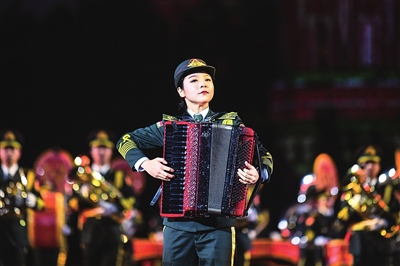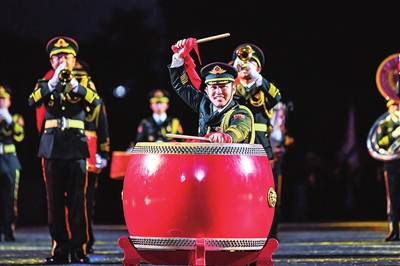 我方今年共选派90人参加,其中演奏队员76人。开幕式上,军乐团66名演奏员,伴随着《钢铁洪流进行曲》的激昂旋律登场,队员们动作整齐划一、步伐铿锵有力,一出场便赢得阵阵掌声;在随后的演奏过程中,队员们不断变换队形,排列成阿拉伯数字“75”,象征着中俄建交75周年。