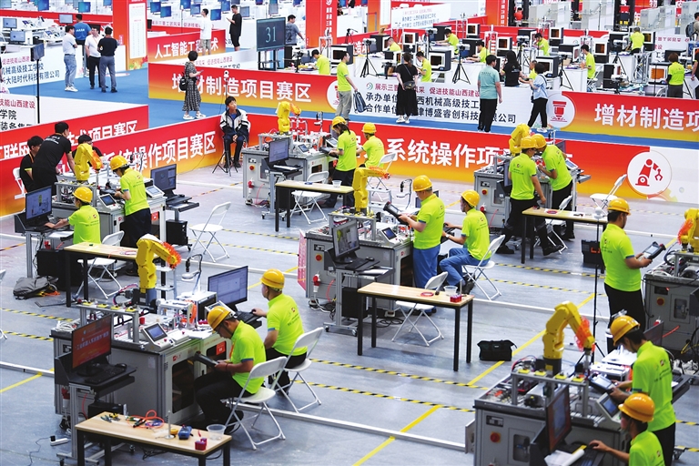 积极搭建市级、行业(系统)、企业三级纵向竞赛平台。我市连续4年开展百万职工“聚焦‘六新’ 助力转型”技能竞赛,聚焦先进制造业、安全生产、民生等领域,突出5G网络、智能制造等新型产业,涵盖数据标注师、无人机装调检修工、数字设计与制造、人工智能训练师等70余个“六新”工种,囊括物流、快递、网约配送等新业态劳动者技能竞赛,覆盖130多个行业、2500余家企事业单位,参与人数达270余万人次。