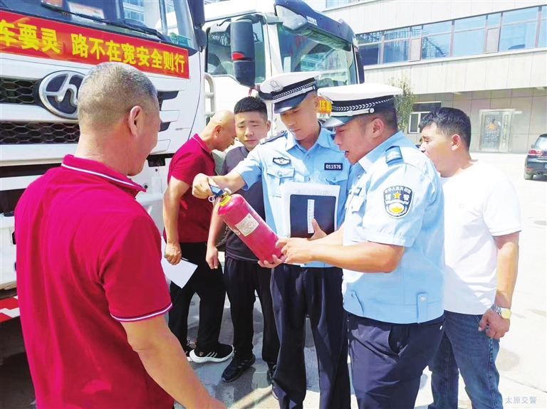 期间,安全民警约谈了企业安全负责人,对企业运输车辆轮胎、车门字、反光标识、行车记录仪、灭火器、蜂鸣器等内容进行抽查。对检查中发现的问题当即向企业指出,责令整改,同时要求企业负责人和驾驶人要严格落实企业各项安全管理制度,严格按照通行证时间和路线行驶,严禁超速、超载、疲劳驾驶、闯禁行等交通违法行为,严防交通事故发生。