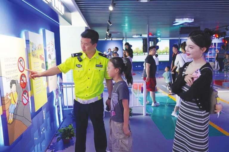为进一步加强民警家属的交通安全意识和自我防护能力,同时方便民警家属近距离感受警营风采,近日交警综改大队组织开展了“警宝进警营——欢乐暑期行”警营开放日活动。活动中,民警家属及孩子们来到交警综改大队交通安全教育基地,通过VR仿真驾驶、交通知识抢答人机交互等科技设备,让萌娃们“零距离”观摩、感受,在游戏过程中熟知相关安全知识,同时教育基地采用卡通人物连环画的方式,把交通安全知识编成谚语,简便而系统,让孩子们印象更加深刻,学会在日常生活中保护自己,避免交通事故的发生。