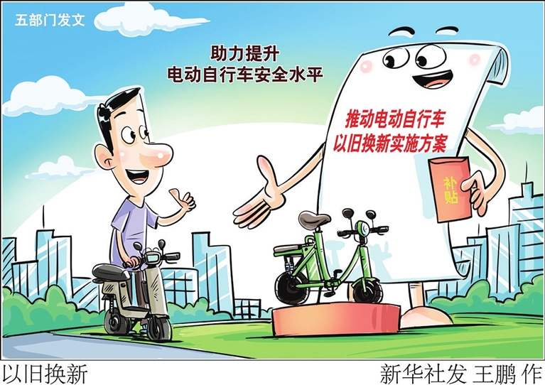 答:今年4月,国务院安委会部署开展电动自行车安全隐患全链条整治行动,国务院办公厅印发《电动自行车安全隐患全链条整治行动方案》,鼓励有条件的地方推动电动自行车以旧换新。7月,国家发展改革委、财政部印发《关于加力支持大规模设备更新和消费品以旧换新的若干措施》,将电动自行车以旧换新纳入支持范围。为落实上述政策精神,商务部等5部门联合出台《推动电动自行车以旧换新实施方案》,推动开展电动自行车以旧换新工作。