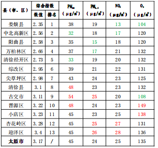 现将上周全市及各县(市、区)、开发区空气质量主要指标通报如下。