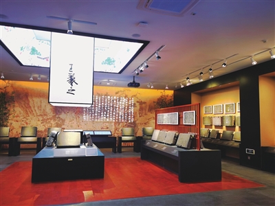 秋日午后,在滨河东路与康乐街交汇处的太原市碑林公园内,翠竹、玉兰、紫薇等花草树木映衬下,小桥流水、亭台楼榭,构成了傅山先生所书的“竹雨松风琴韵,茶烟梧月书声”诗意画卷。