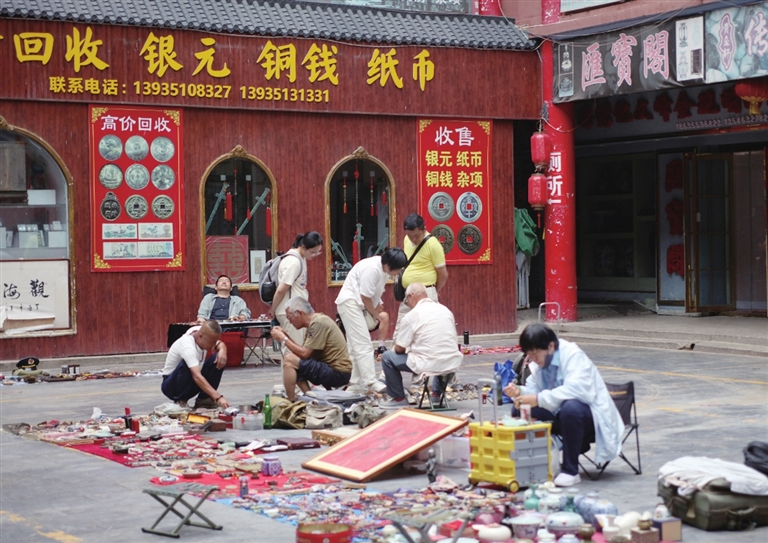 总以为逛古玩市场是上年纪人的专利,不承想市场上不乏年轻人的身影。在开化寺古玩市场的亦乐山房里,碰到了一个小伙子,略显腼腆。老板常国忠笑着给大家介绍:“这个小伙子在高考前两天的下午还来逛我的店。你们想知道他考哪里了?复旦大学啊……”小伙子不好意思地解释道:“其实,高考前那次来逛店,只是为了解压……”太平有象堂的刘宇明经理也高兴地表示:“看到年轻人,我心里就特别高兴。我们这个行当也应该注入新生力量了……”