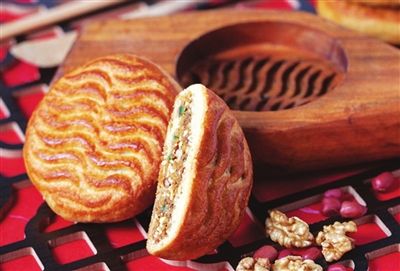 有一天,师徒乘兴喝了两盅,一觉睡过了点,和好的面开始发酵。咋办?师徒三人试着按照蒸馒头的办法,往发酵的面里和了油、碱和生面粉,包上了玫瑰青红丝的馅料,在炉火里烤得两面金黄。没想到,这饼酥软绵甜比原来还好吃,成了抢手货。