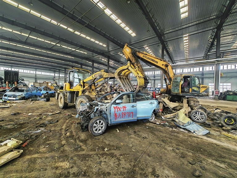 山西物产再生资源利用有限公司(以下简称“物产再生公司”)是华远国际陆港集团有限公司旗下企业,前身为山西省物资再生利用总公司,从事报废机动车回收拆解业务40余年,是经省商务厅认定、商务部备案的具有报废机动车回收拆解资格的再生企业,连续多年在报废机动车回收数量和市场占有率位列全省第一。“2023年4月在清徐成立了山西物产绿色循环(物流)产业基地,截至今年9月份回收拆解燃油报废车1.8万多辆。”王滔说。