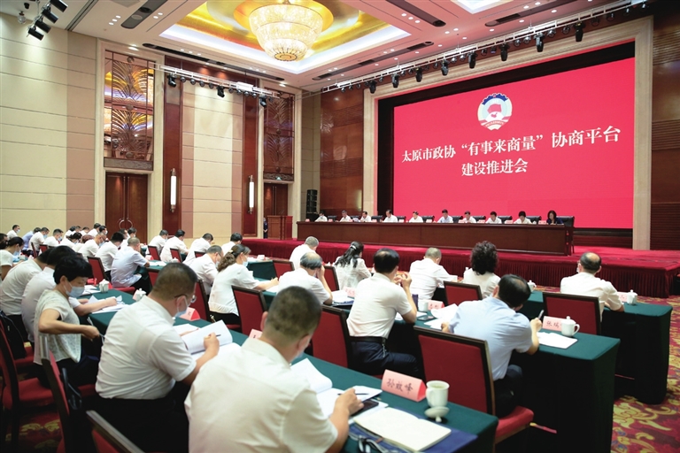 2020年起,市政协在全省先行先试开展“有事来商量”协商平台建设,市政协主要领导带队先后赴合肥、南京、杭州等地考察学习,加强顶层设计和实践指导,出台《关于开展“有事来商量”平台建设工作的指导意见》,召开全市政协系统“有事来商量”协商平台建设推进会,开展试点先行和现场推进,组织实地参观、现场观摩、专题讲座。各县(市、区)政协积极探索,形成了晋源区“晋情来协商”、迎泽区“欢迎来协商”、阳曲县“阳光协商”、小店区“小事大情共协商”、娄烦县“烦事来协商”等彰显不同特色的协商品牌。