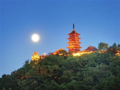 9月17日在江苏南通拍摄的圆月和支云塔(无人机照片)。 中秋月明,神州各地人们同赏一轮明月,欢度传统佳节。新华社发