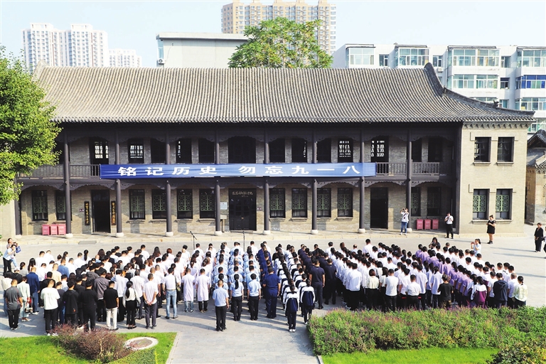 9月18日,山西国民师范旧址革命活动纪念馆与全国多家抗战类纪念馆同步举行“铭记历史 勿忘九一八”活动,公安、消防、学生代表以及各社会团体百余人共同缅怀历史,传承抗战精神。张昊宇 郭苑甫 摄影报道