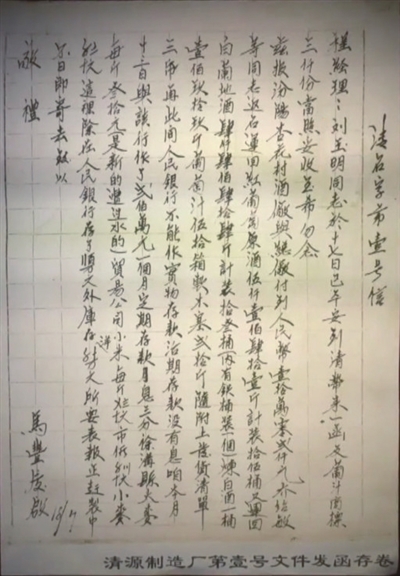 在清徐县山西省清徐葡萄酒有限公司的陈列室里,珍藏着一封函。纸面已经泛黄,但上面的字迹依然清晰可见。
