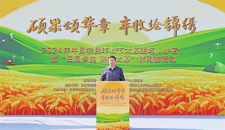金秋时节,小店区刘家堡村秋粮丰收在望、瓜果十里飘香,满眼秋收的画卷。2024年中国农民丰收节太原主场活动在这里拉开帷幕。活动现场,清甜的葡萄、饱满的玉露香梨等农产品琳琅满目,剪纸、泥塑、陶瓷等非遗作品工艺精美,牺汤、碗托等美食引得群众纷纷驻足品尝。韦韬一行逐一参观特色农产品、非遗项目、特色美食展示,饶有兴致地观看“共庆丰收”文艺路演和具有民族特色的舞蹈展演,与现场农民、商户亲切交谈,详细了解产业前景、产品销路、联农带农等情况,共话农业发展,共享丰收喜悦。