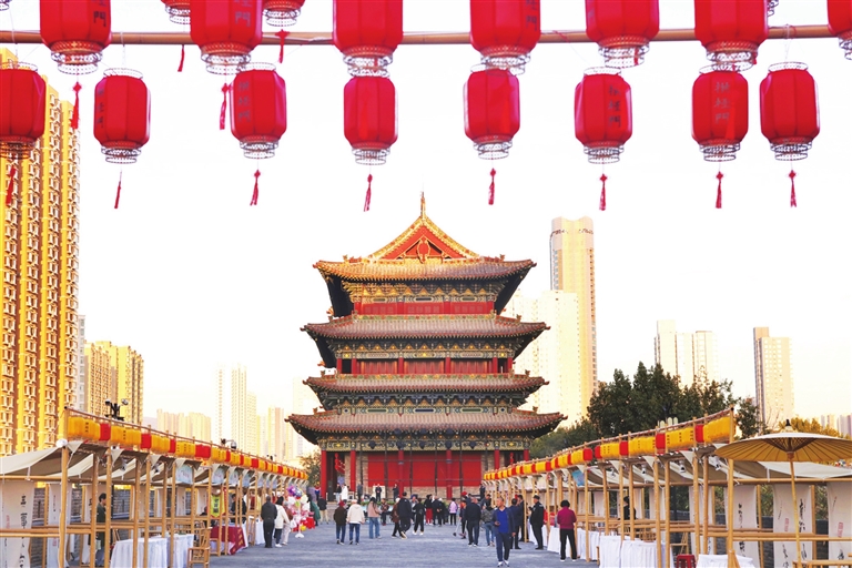 10月3日,杏花岭区拱极门城墙遗址“城迹”历史展系列活动持续火热。本次活动包括非物质文化遗产项目体验、书画笔会、文创集市等内容,将持续到10月7日。图为游客在拱极门城墙遗址文创集市游玩购物。