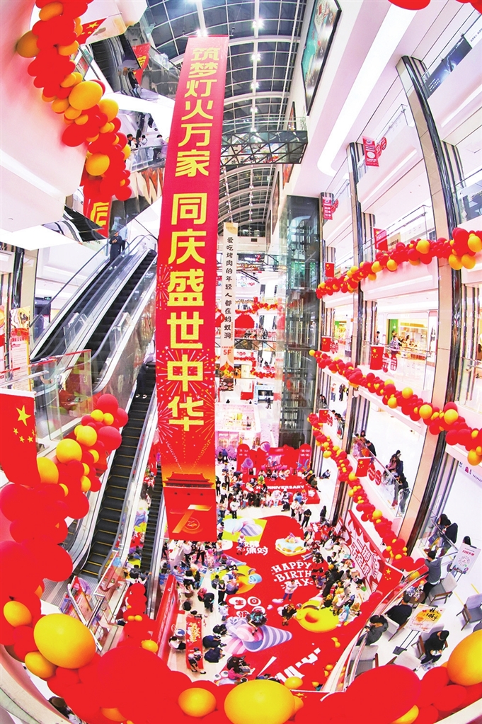 10月5日,长风街一商场内国庆氛围满满,顾客络绎不绝。张昊宇 郭苑甫 摄影报道