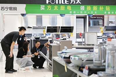 10月5日,市民正在柳巷一家电城挑选家电,咨询以旧换新政策。由山西省商务厅、山西省发展和改革委员会、山西省财政厅、山西省市场监督管理局主办的“晋情消费,以旧换新”活动在我市开展以来,市民踊跃参与,利用优惠政策选购商品。郭苑甫 摄