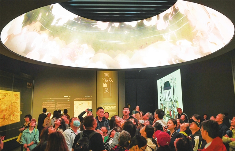 国庆假期,太原市各文博场馆人气满满。10月7日,太原北齐壁画博物馆内,游客感受文物芳华,体验别样的晋韵之旅。牛利敏 摄