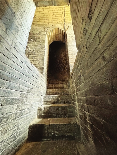 我还发现背对塔门的那一面墙上,有一道明显是门洞的痕迹,却被砖封砌。这又是怎么回事?回来查询方知,这是地宫门。佛塔下面一般都建有地宫,以便埋藏舍利子、供奉经书等。比如著名的唐代五重棺椁,就是在太山龙泉寺地宫被发现的。宣文塔的地宫里究竟藏着什么?答案未知,以后或许能知晓。