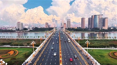 走近迎泽大桥,我被它的壮美所震撼。国庆期间,太原人甚至许多外地人都纷纷来这里打卡拍照,为祖国祝福,为家乡点赞。站在桥上,微风拂面,带来丝丝凉意。俯瞰桥下,汾河之水波光粼粼、缓缓流淌,如同一条丝带,为城市增添了一抹灵动之美。