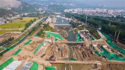 10月16日,幸福桥建设现场,太原市政集团正紧锣密鼓地施工。该工程设计为一座跨汾河大桥,西起净因寺广场前路,东至滨河东路。建成后,将进一步完善省城交通网络,提升城市形象。王韵菲 摄