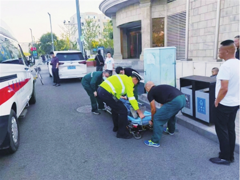 当日下午17时,辅警张少千、胥国峰在辖区巡逻,发现一名行人晕倒在汾东南路昌盛街口路边,立即上前查看情况,此时该男子意识模糊。“师傅,醒一醒,你哪里不舒服?”鉴于对其身体状况不明,无法判断伤情的情况下,二人在保持与男子对话,试着使其保持清醒的同时,急忙拨打120救助电话。随后将躺在地上的男子扶至侧身位,防止男子憋气窒息,一边疏散围观群众,保障道路交通畅通。不久,救护车及时赶到,执勤辅警帮助医护人员将病人抬上救护车,送往医院及时接受治疗。