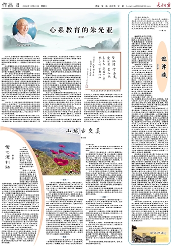 巍巍双塔,标并州之风骨;汾水浩浩,濯市心以清漪;并州路廓,从容转型发轫;迎泽桥飞,铿锵跨越奋起!忆昔唐明古镇,蔽天光、发地脉,作坊、商店星罗棋布,盛况空前;唯我迎泽之初,秦汉郡、隋唐都,国藩、民篱历经战乱,迭遭更替。永祚牡丹,国色“紫霞仙”,天香润龙城,引领群芳斗艳争奇;崇善国宝,藏经宋元明,地藏“宝石画”,琅函宝相大悲大智。打响三晋第一枪,为共和创立,景从武昌首义;撒播革命星火种,盼雄师东来,春到风展红旗!