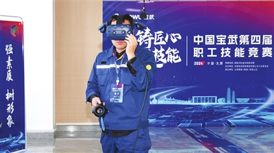近日,在中国宝武第四届智能冷轧复合技能赛中,太钢集团职工参加VR技术应用比拼。太钢将VR技术纳入实际生产技能竞技,通过技术比武、技能竞赛,培养“操检维调一体化”高技能人才,为企业持续发展奠定了基础。王旭宏 摄