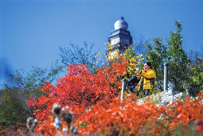 秋风起,缤纷落,山林换上新装。崛围山、蒙山、太山……远远望去,宛如被大自然精心勾勒,金黄的栌、火红的枫、墨绿的松,在斑驳的光影间,流金溢彩。山间小径也被落叶点缀得如同一条五彩斑斓的锦毯。漫步其中,仿佛置身于梦幻般的童话世界。