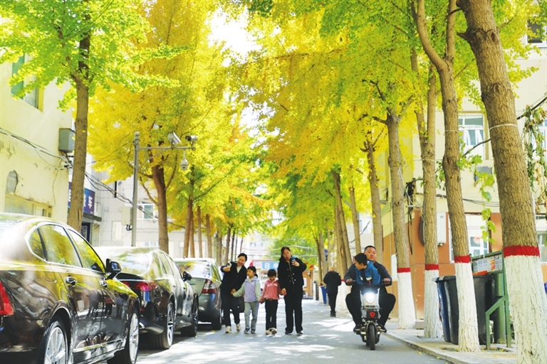 十月二十八日,迎泽区老军营小区内,居民寻觅秋景,邂逅家门口的缤纷秋色。张昊宇 郭苑甫 摄影报道