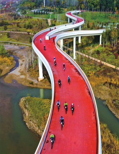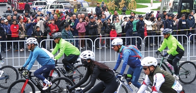 一路上,闪光的头盔、炫酷的骑行服、色彩鲜亮的自行车,像跳跃的音符,触发着城市的脉搏。他们把矫健的身姿,留在了这座美丽的城市。