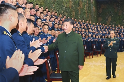 深秋时节,荆楚大地层林尽染、景色宜人。下午3时许,习近平来到空降兵军机关,在热烈的掌声中,亲切接见空降兵军官兵代表,同大家合影留念。