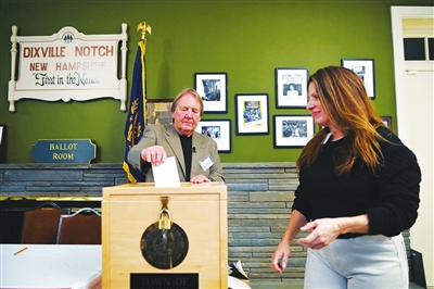 11月5日,美国新罕布什尔州迪克斯维尔山口镇选民按照传统率先投票。新华社记者 李 睿 摄