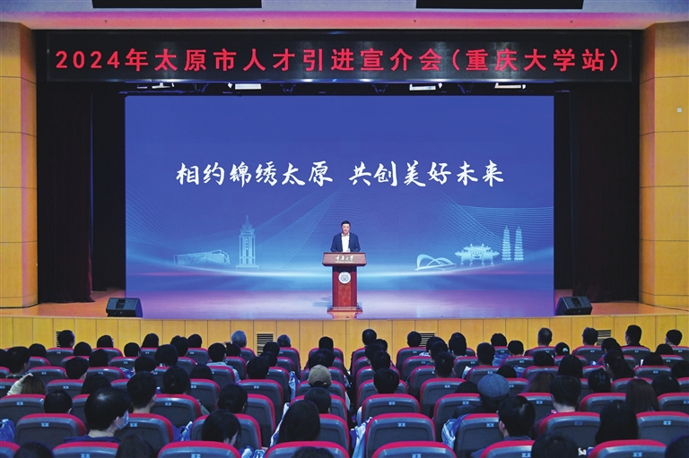 当天上午,“相约锦绣太原 共创美好未来”宣介会在重庆大学举行,来自重庆大学、西南大学、西南政法大学、重庆师范大学、重庆理工大学、重庆交通大学、重庆邮电大学等学校的数百名学子参加。韦韬在主旨演讲中,从历史底蕴深厚、宜居宜业宜游、发展潜力巨大三个方面宣传推介太原之韵、太原之美、太原之变、太原之进。他说,转型蝶变、加速崛起中的太原备受关注、潜力巨大、未来可期,我们将持续搭建精心用才舞台、持续营造诚心敬才环境、持续提供真心爱才服务,诚邀各类人才到太原放飞梦想、施展才华、建功立业。会上,在并工作的重庆大学毕业生代表分享了个人工作经历和生活感受。