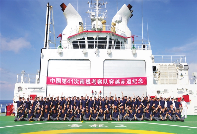 北京时间11月6日8时50分,正在执行中国第41次南极考察任务的“雪龙2”号穿越赤道进入南半球。此前,“雪龙”号已于5日驶过赤道。考察队在“雪龙”号和“雪龙2”号分别举行了穿越赤道纪念活动,以简单而热烈方式告别北半球,继续向南极挺进。