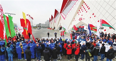 中国援建的白俄罗斯国际标准游泳馆6日正式移交给白方并启用。白俄罗斯总统卢卡申科出席仪式并向中方表达诚挚谢意。白俄罗斯国际标准游泳馆是共建“一带一路”重点工程,总建筑面积约4万平方米,可容纳观众6000余名。建筑以白俄罗斯民族纹饰红白色为主色调,室内加入了矢车菊的蓝紫色,建筑本体形状为5个菱形“手拉手”,象征着中白友谊万古长青。