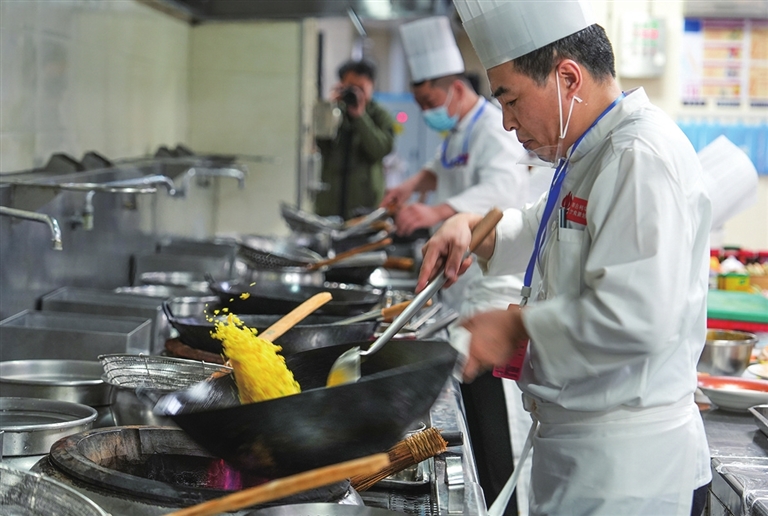 比赛现场,烟火气与紧张感交织。选手们纷纷亮出看家本领,以锅铲为笔,食材为墨,巧妙融合经典与创新,刀工、火候、调味……每一个细节都力求完美,煎、炒、烹、炸……每一种做法都行云流水。
