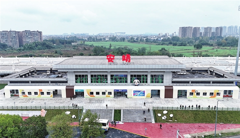 11月10日拍摄的安靖站(无人机照片)。当日,国铁集团在成都展示我国首个旅游列车专属基地车站——安靖站。该车站距成都市中心10公里,衔接宝成、达成、沪蓉、川青、成昆、成雅等多方向线路,可为直通普速旅游列车抵蓉后提供快捷接驳,方便旅客快捷去往青城山、都江堰、黄龙、九寨沟等著名景点。新华社记者 刘 坤 摄