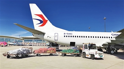 “双11”期间,山西特产航空运输迎来高峰。11月11日,东航山西单日进出货物达80吨,较平时增长了60%。王韵菲 摄