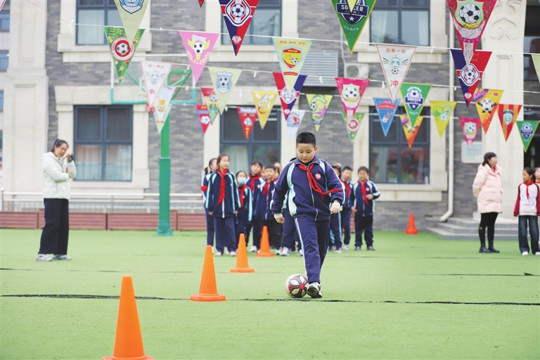 11月12日,迎泽区小五台小学校园足球节开幕。本次足球节为期5天,全校师生组成24支队伍,400余人参加活动。张昊宇 摄